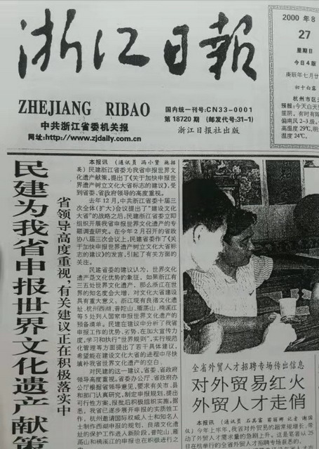 接著,浙江民建對申遺的目光,從西湖擴大到整個浙江,十年十次建言——